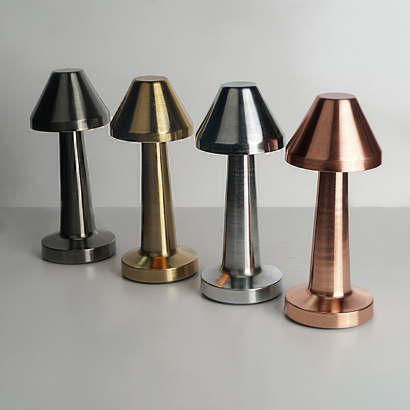 چراغ رومیزی شارژی مخروط مدل رترو رنگ نقره ای
