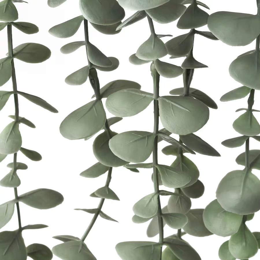 بوته آویز گیاه مصنوعی اکالیپتوس قابل استفاده در محیط باز و سرپوشیده قطر گلدان 9 سانتی متر طول گیاه آویز 58 سانتی متر